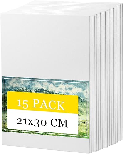 Cobenga 15 Pièces Toiles pour Peinture, Format A4 21 x 30 cm Petits Panneaux de Toile de Peinture, 100% Coton Blanc Vierge, Petits Panneaux d'Art en Toile Tendue pour Peinture à l'Huile