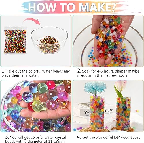 Lot de 30 000 perles d'eau multicolores de 11 à 13 mm - Remplissage de vase réutilisable - Grandes perles d'eau transparentes pour plantes - Perles d'eau en cristal pour remplissage de vase DIY