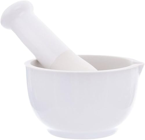 Orion Mortier en céramique avec pilon, mortier à épices, mortier de cuisine, blanc, Ø 8,5 cm