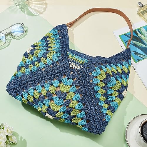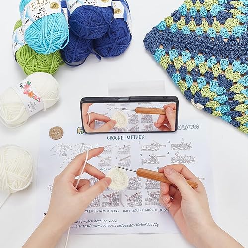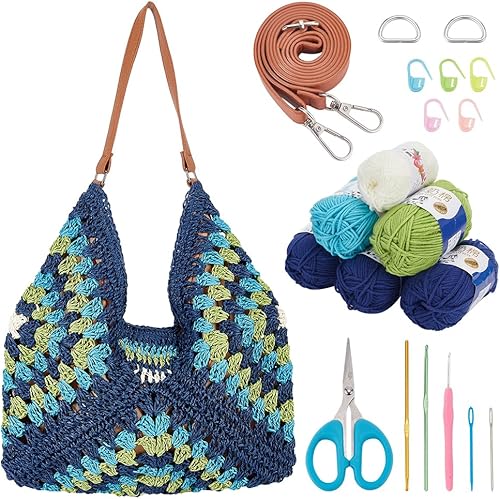 FREEBLOSS Sac au Crochet Kit de Crochet Bleu Complet pour Débutants Adultes avec Tutorial, Tendance, Activité de Bricolage, Cadeau Fait à la Main, Non Pliant