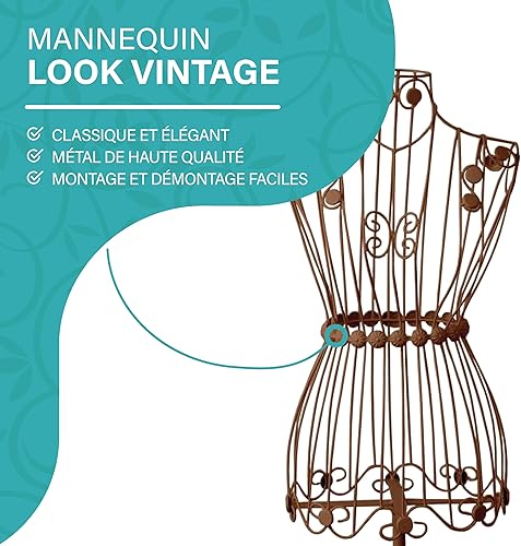 PrimoLiving Mannequin de Couture en métal Bella Donna en Brun Antique - Mannequin Vintage - idéal comme Mannequin féminin ou portemanteau - P-00243