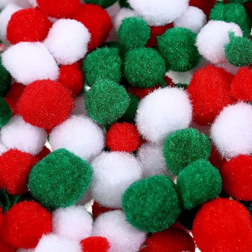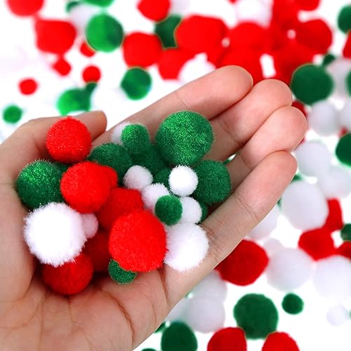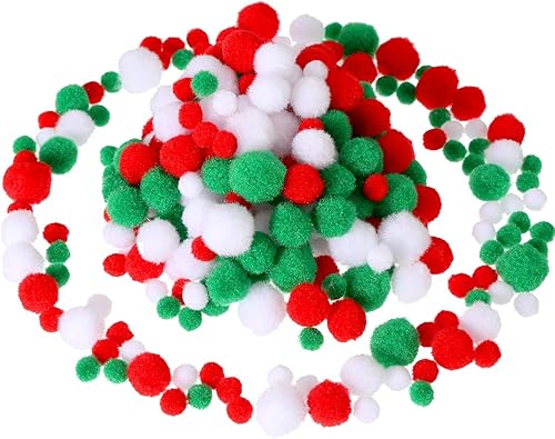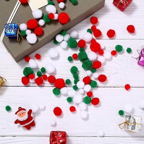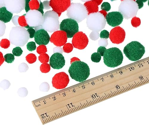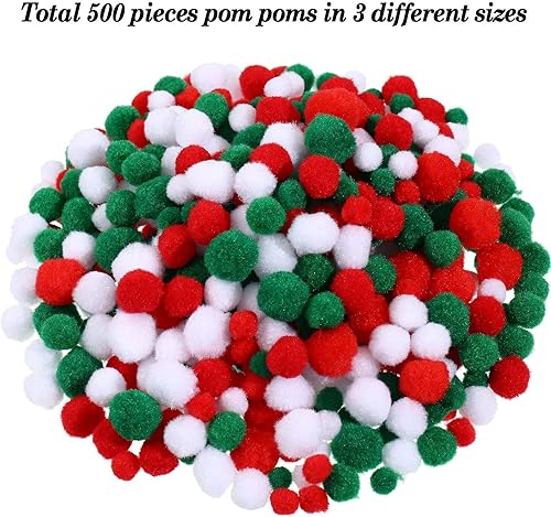 500 Pièces Pompons de Noël Pompons Assortis Petits Pompons d’Artisanat Boules de Pom Duveteuses pour Artisanat Bricolage de Noël Fourniture de Décoration de Fête, 3 Tailles
