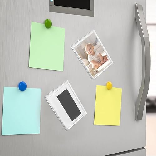 Hinapan Lot de 12 petits cadres photo magnétiques pour photos, vierges, aimants de réfrigérateur, en acrylique, transparents, 7,7 x 5,2 cm et 8,6 x 6,1 cm