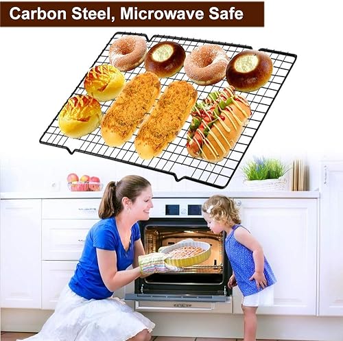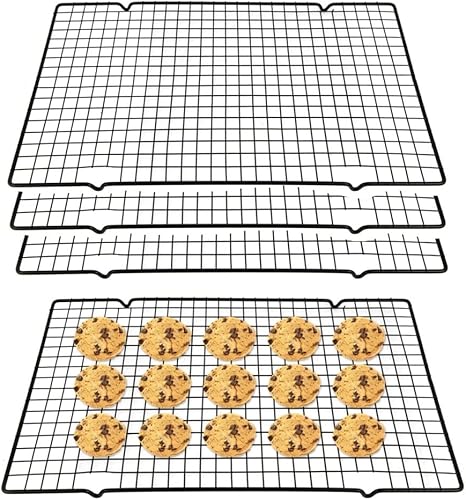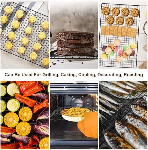LYTIVAGEN 4 Pièces Grilles de Refroidissement en Acier Inoxydable Grille de Refroidissement Carré Volette de Refroidissement Noir pour Rôtir Cuisson/la Pâtisserie(40.5 * 25 cm)
