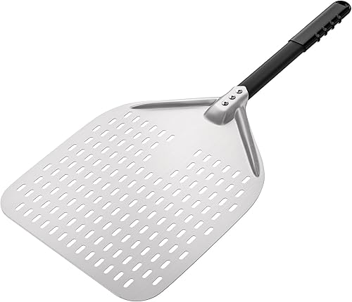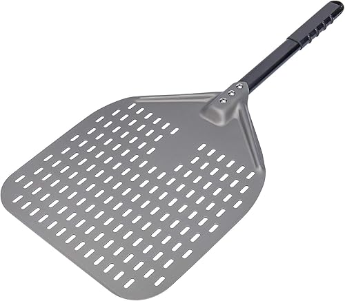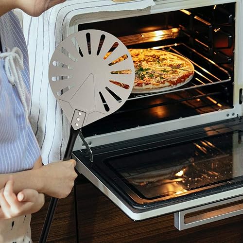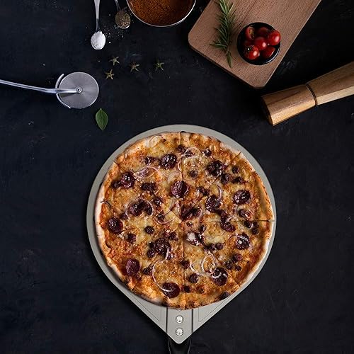 Karboby Pelle à Pizza 23 cm pour Four a Pizza, Pelle à Pizza Perforée Tourne-Pizza Rond Pizza Paddle en Aluminium Anodisé Dur avec Poignée Amovible pour Tourner la Pizza, Pain, Crèpes etc