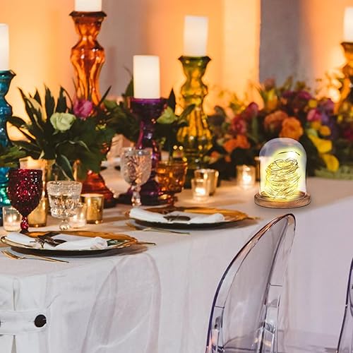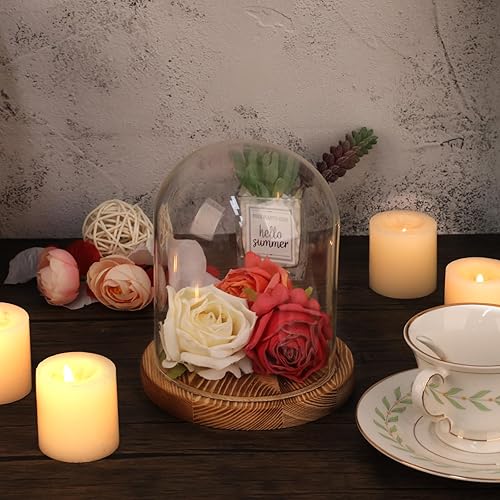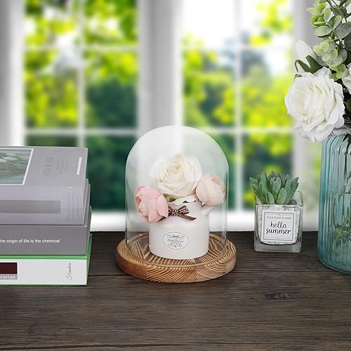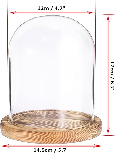 TOLIDA Dôme en verre avec socle en bois naturel - Cloche en verre décorative robuste - Pour lampes, bougies, roses, décorations antiquités pour Noël, anniversaires, Saint-Valentin