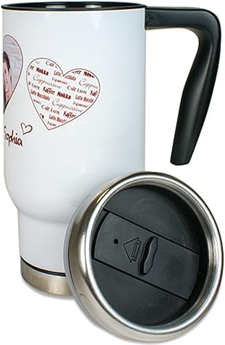 Mug thermos blanc avec anse personnalisé photo – Mug ou gobelet isotherme grand format et étanche avec impression photo – Mug thermos personnalisable