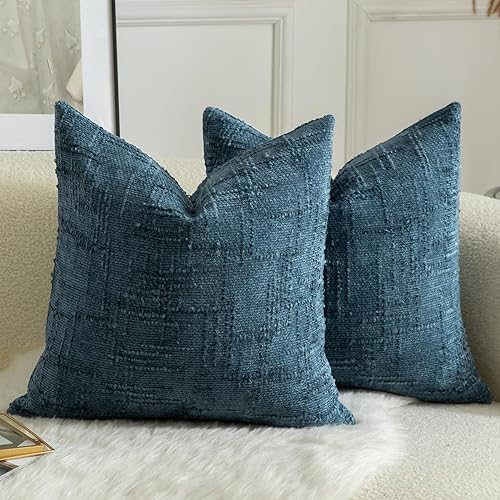 MANDIOO Lot de 2 housses de coussin décoratives carrées texturées en chenille douce et solide pour canapé, sofa, lit, salon, 50,8 x 50,8 cm, bleu marine
