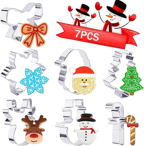 Faburo Lot de 7 Emporte-pièces de Noël en Acier Inoxydable Arbre de Noël Flocon de Neige et Autres Formes pour Décoration de Fondant Biscuit Cookie Pâtisserie