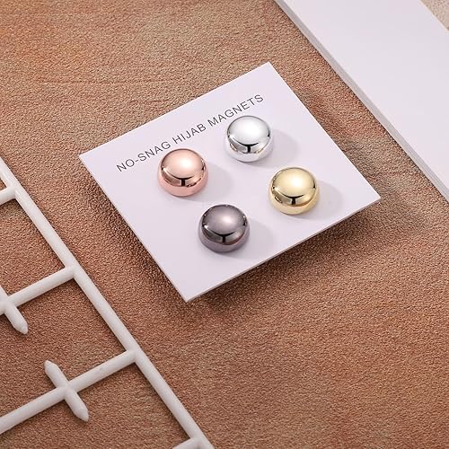 4 Pièces Épingles Magnétiques Hijab, Multi-Usages Aimants Hijab Broche sans Épingle Style Rond Fermoir Écharpe sans Accroc pour Femmes Vêtements Chemises Foulards (Placage)