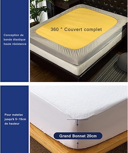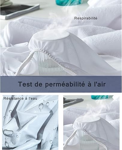 HNTYSM Imperméable Protège Matelas 180x190 Bonnet 20 cm Drap Housse 180x190 Housse Matelas Lit Adulte et Enfant,Couvre Matelas Alèse Respirante Hypoallergénique Anti-Acarien,Blanc