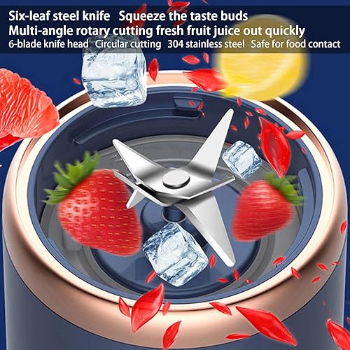 Stibtmr 14OZ Mélangeur Mixeur Portable Blender Shakes Portable Miniature Mélangeur Rechargeable Presse Agrumes De Voyage Avec 6 Lames Pour Sport