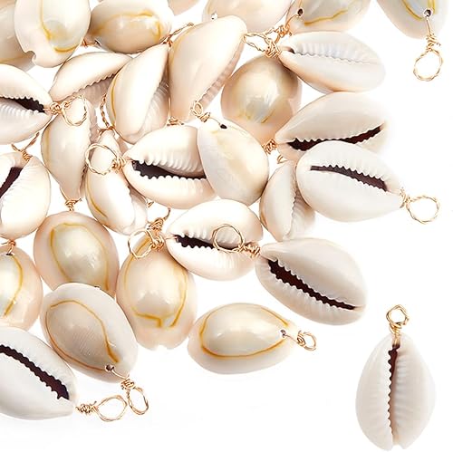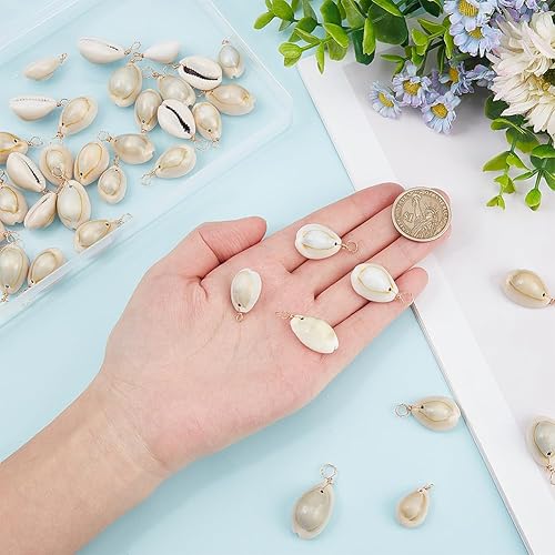 Beebeecraft 1 boîte avec 50 pendentifs en coquille Saint Jacques naturelle plaquée or 18 carats pendentifs de coquillage de plage pendentifs en coquille de cauris pour la fabrication de bijoux DIY
