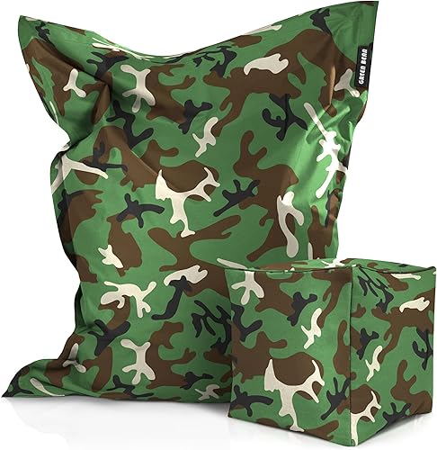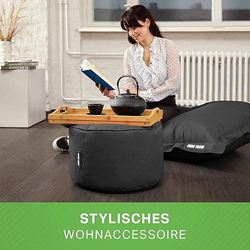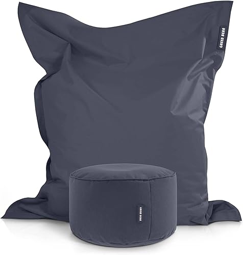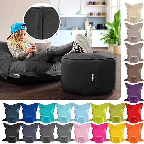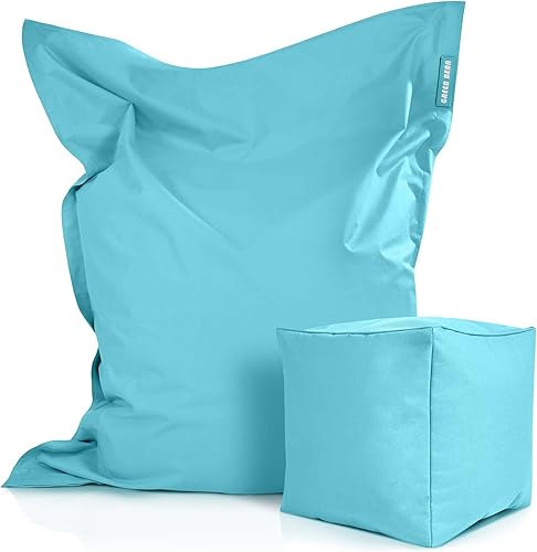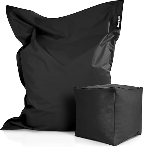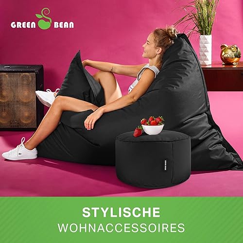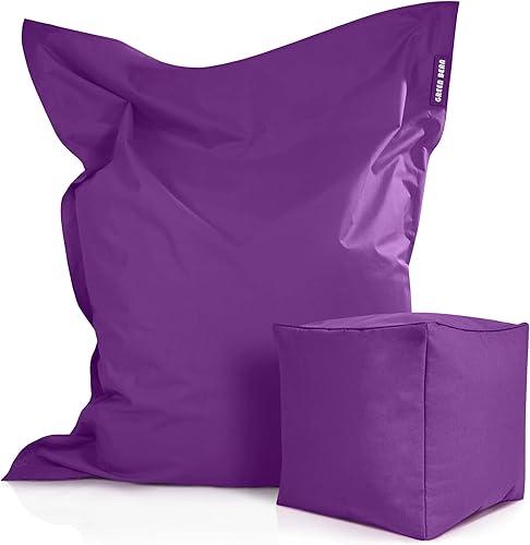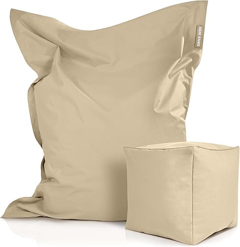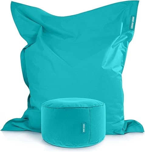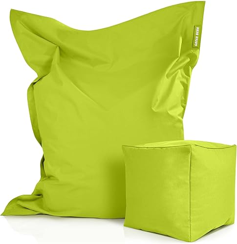 Green Bean© Set de 2 – Square XXL Beanbag + Rond Tabouret – Rembourrage Inclus – Housse Lavable en PVC Robuste – Imperméable à l'eau – Intérieur et extérieur – pour Enfants et Adultes