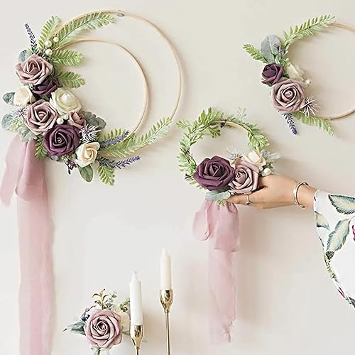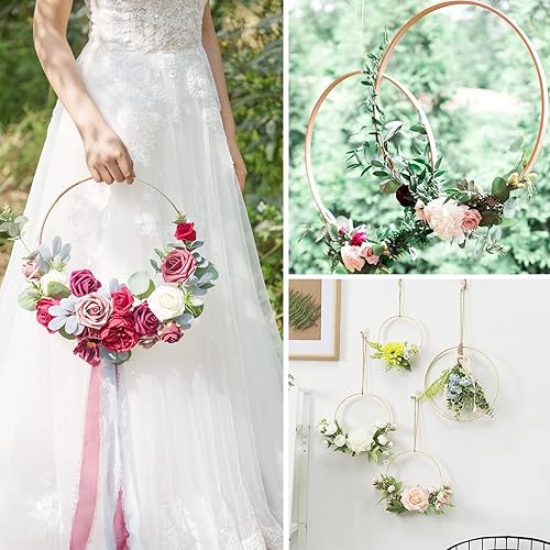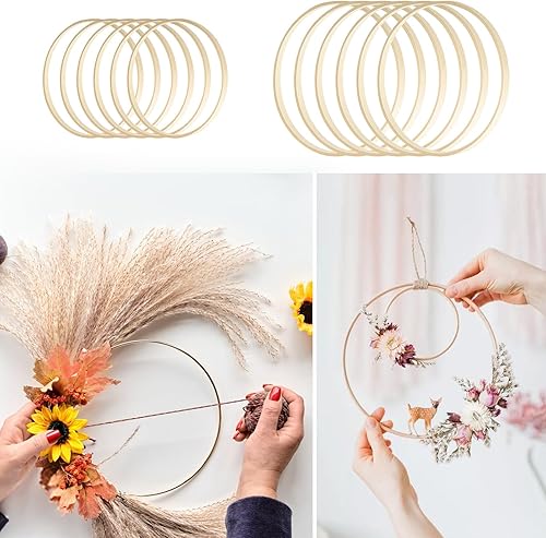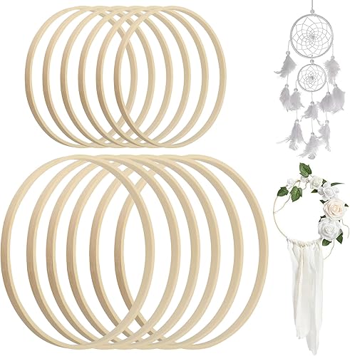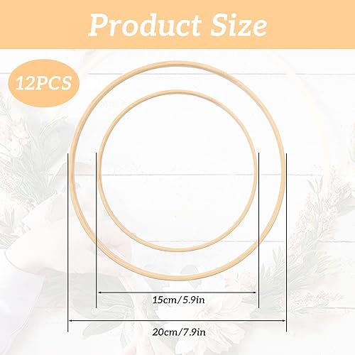 Anneaux Attrape Rêve en Bambou, 20cm/15cm,12 Pièces Cercle en Bois Macramé, Anneau Bois, Dreamcatcher pour Bricolage Attrape Reve Mobile Couronne de Mariage Décoration Murale