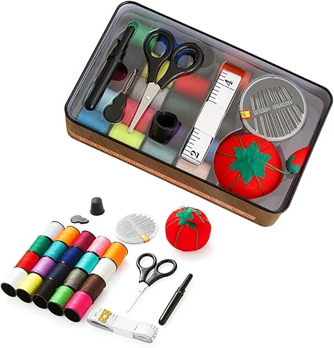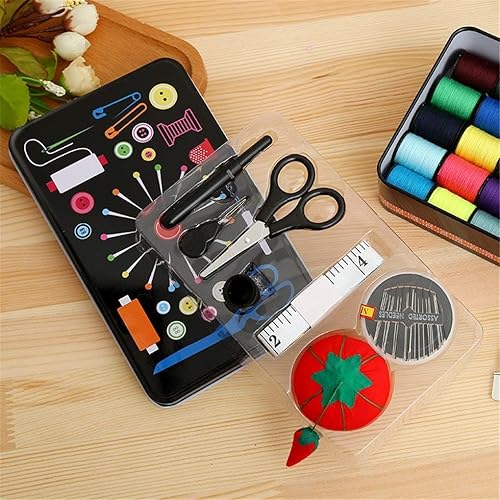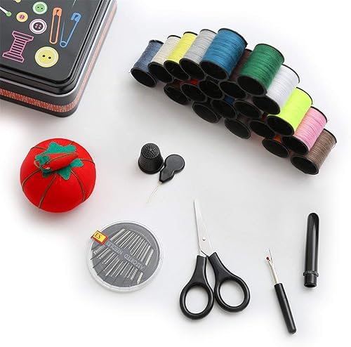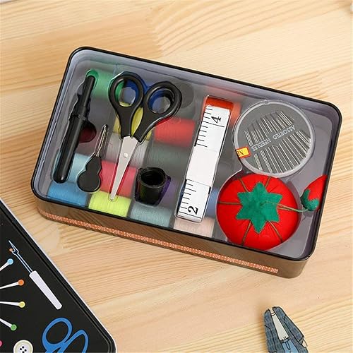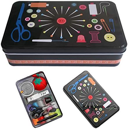 Xrten 26pcs Boîte de Couture de Fer-Blanc, Trousse Couture avec Variété Aiguilles Épingles Ciseaux Boutons Professionnel Portable Necessaire Couture Accessoires(Coloré)