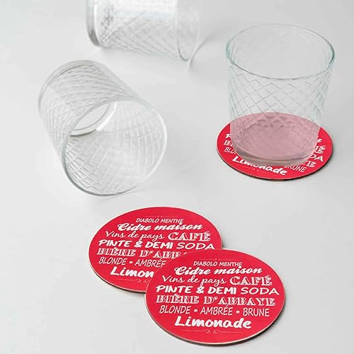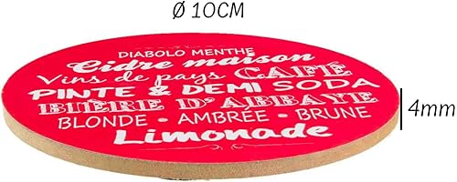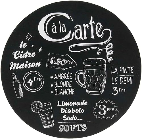 Lot 4 Dessous de Verre Ronds en Bois Bistrot - 3 modèles Différents (Noir 1)