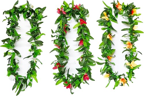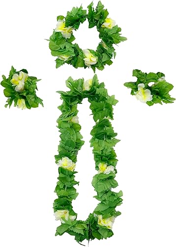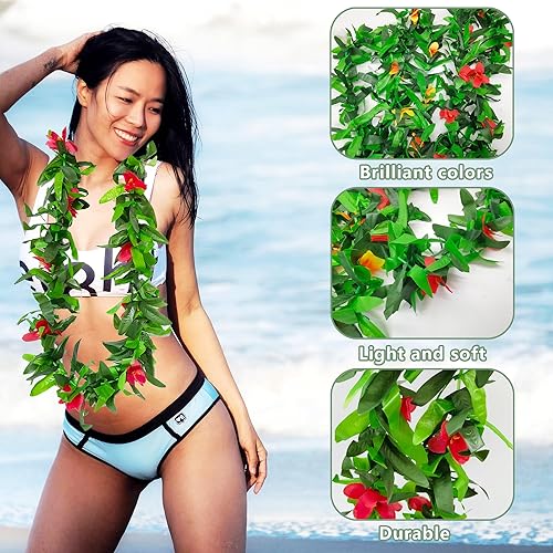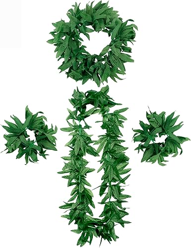 douyif Collier Hawaien Tropicale 4Pcs Collier Feuilles Hawaii Plantes Tropical Guirlande Hawaïenne Couronne Hawaienne pour Carnaval Mariage De Plage Luau Tropical Party Décoration (b Feuille)