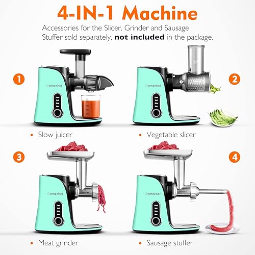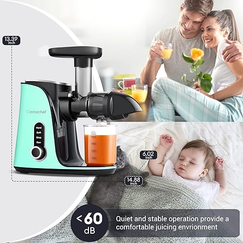 AMZCHEF Extracteur de jus, pour légumes et fruits, avec 2 modes de vitesse, avec bouteille portable et 2 tasses, sans BPA, avec LED intelligente et fonction inverse, vert