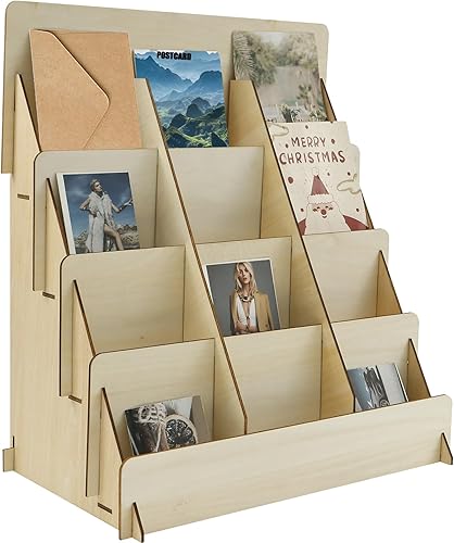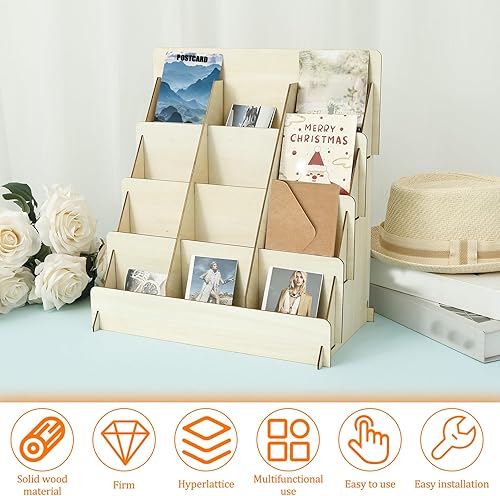 harupink Présentoir à cartes en bois à 4 étages - Support de présentation multifonction en bois - Présentoir de vente au détail - Support de cartes postales pour cartes, autocollants et photos