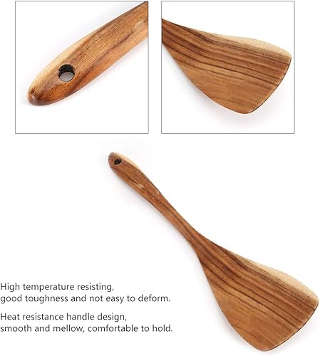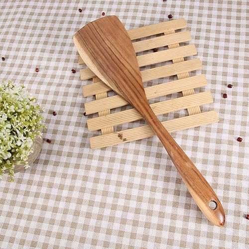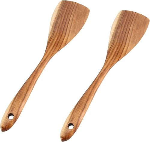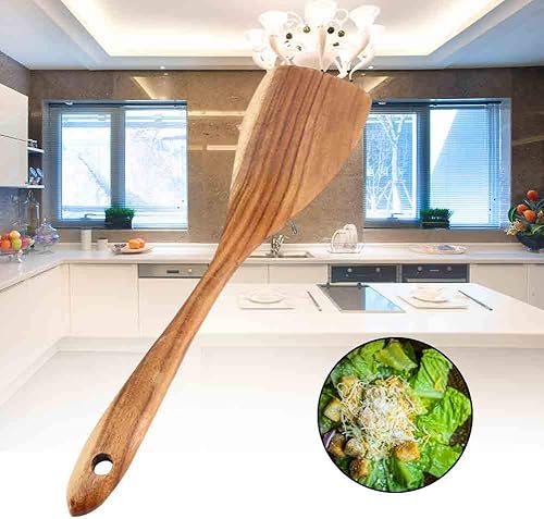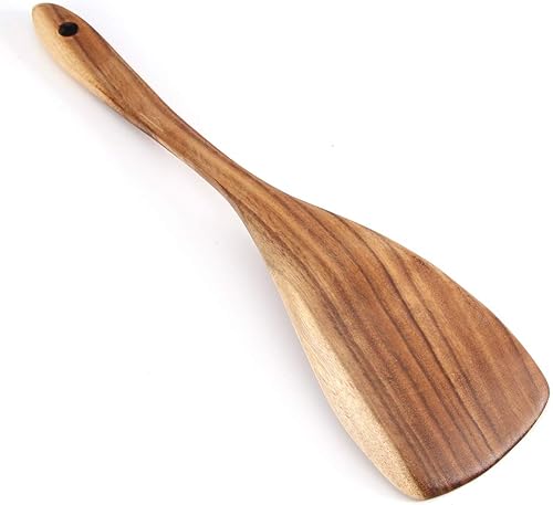 Spatule en Bois de Teck pour la Cuisson - Ustensile de Cuisine Antiadhésif et Résistant à la Chaleur (31.5x7.5cm)