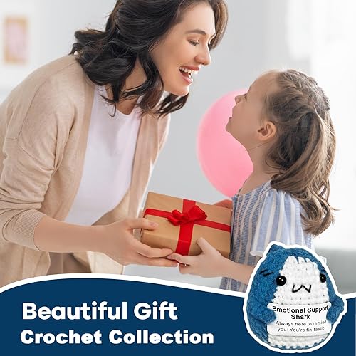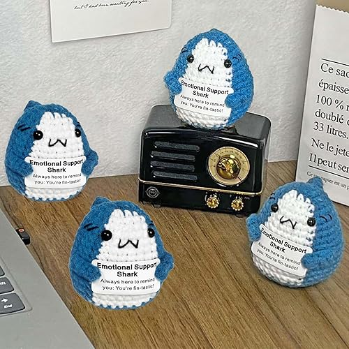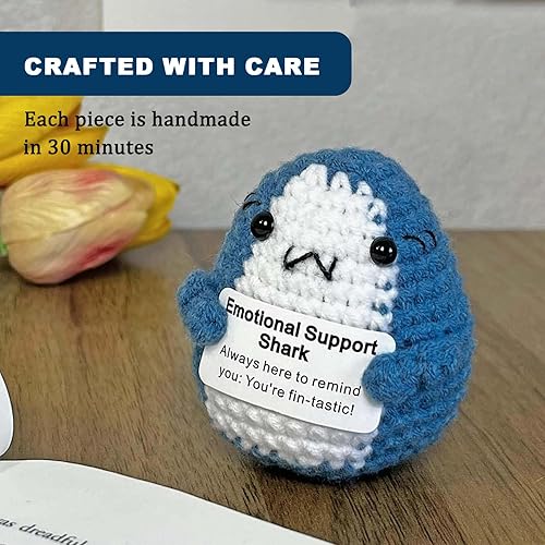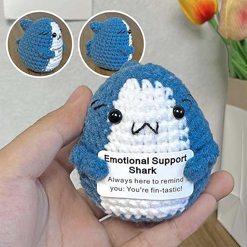 Irikdescia Poupée requin tricotée positive, en tricot, qui offre un soutien émotionnel et de l'énergie pour offrir des cadeaux, des mamans porte-bonheur et des examens
