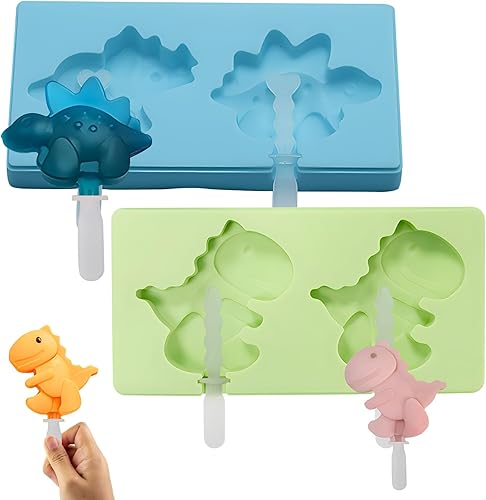 Gfamous 2 Pièces Moule à Glace Pour Enfants,Moules à Glace en Silicone pour Enfants,Mini Moule a Glace Réutilisable,Sans Bpa,Réutilisable, avec couvercle,DIY Moule Sorbet(Dinosaure + Monstre)