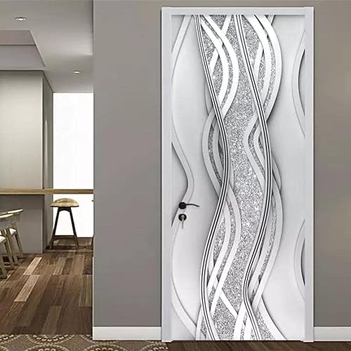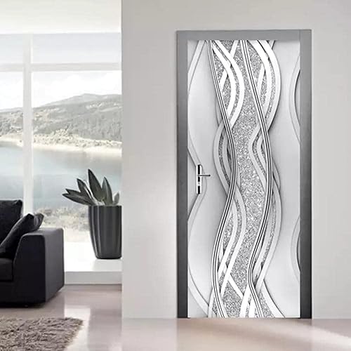 ASLKK Stickers Porte Affiche 3D Trompe Loeil Effet Auto Adhésif PVC Muraux Imperméable Sticker Murales Autocollants Affiches Art Décor,Diamant d'argent De Simulation De Ligne Papier Peint (77x200cm)