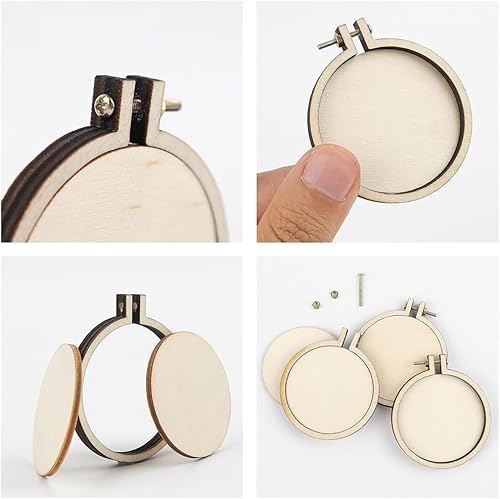 Ginobili Paquet de 20 Mini Cerceaux à Broder Ronds en Bois, Cerceaux en Bois, Cadre D'Affichage, Cercle pour Bricolage, Artisanat, Facile à Utiliser