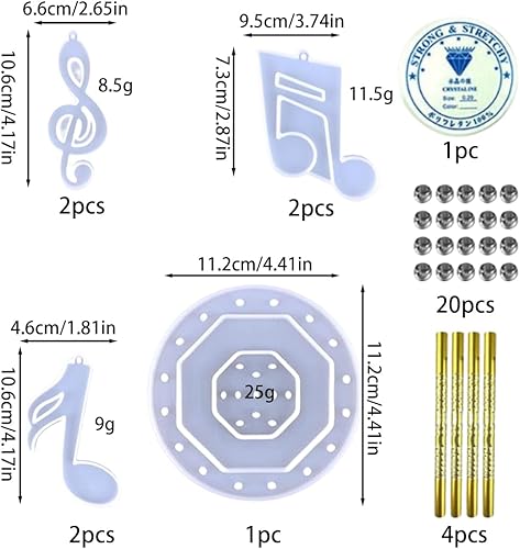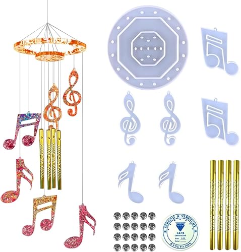 DeryArcle 32 Pièces Moule Carillon Resine Moule en Silicone Carillon éolien Moule Note de Musique Moulage de Coulée de Epoxy pour Bricolage Décoration Pendentif