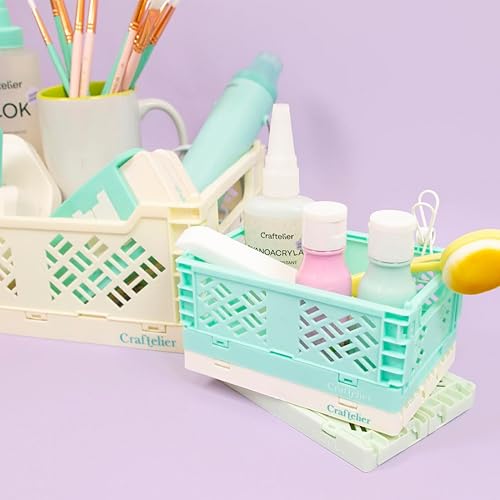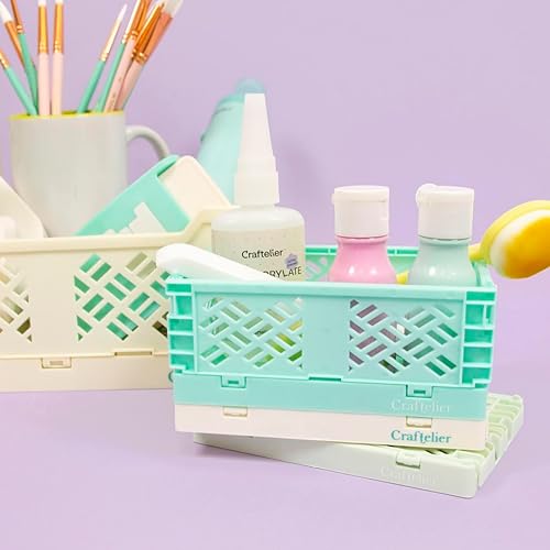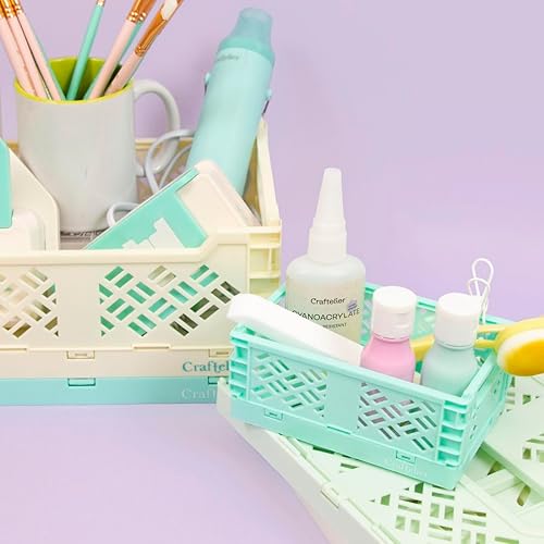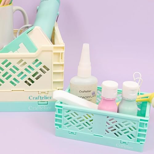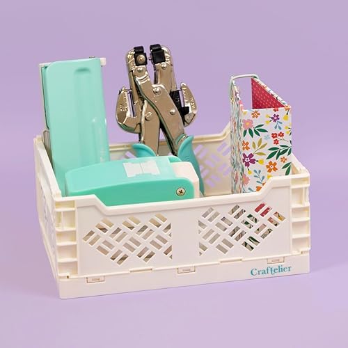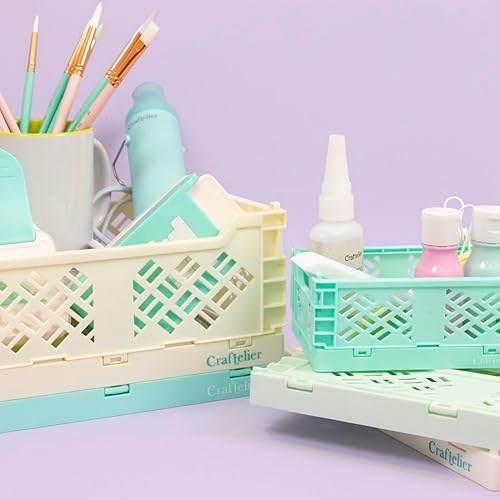 Craftelier - Boîte pour l'organisation et le stockage des matériaux d'artisanat | Design pliable et empilable | Grande taille - Dimensions boîte ouverte 24,5 x 18 x 10,8 cm - Jaune
