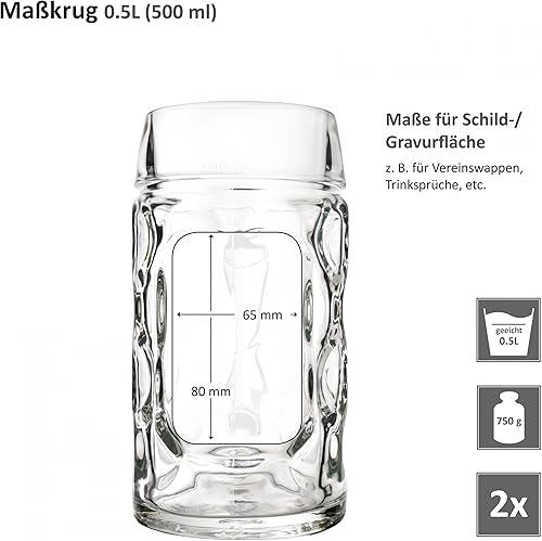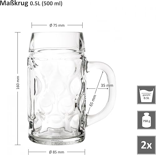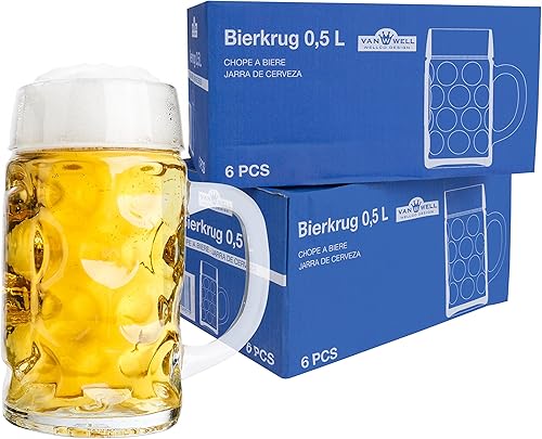 Van Well Lot de 2 chopes à bière - Avec poignée - Lavables au lave-vaisselle - Contenu : 0,5 l - Parfaites pour une utilisation en milieu gastronomique