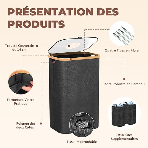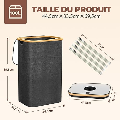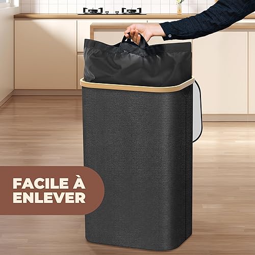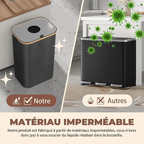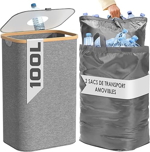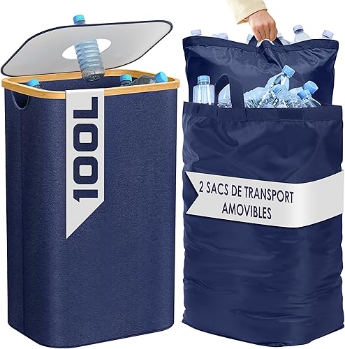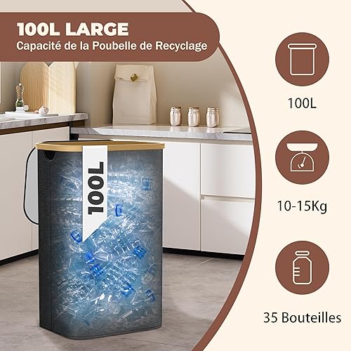 Poubelle de Cuisine 100L - Poubelle de Recyclage avec 2 Sacs de Transport XXL - Poubelle Tri avec Sac de Transport Supplémentaire - Poubelle 100l Cuisine avec Trou - Poubelle Plastique (Noir)