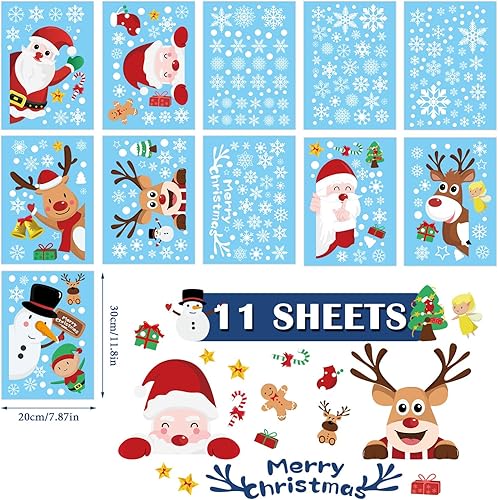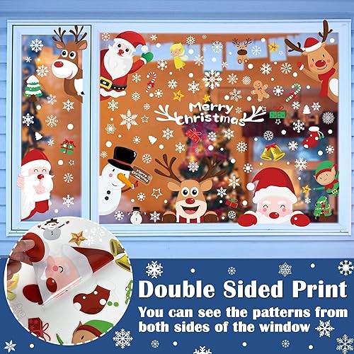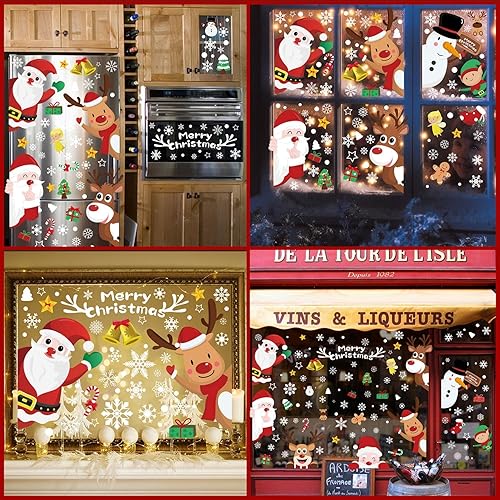 FullJoyHut 362 pcs Décoration Noël Sticker Fenetre Pere Noël Rennes Blanc PVC Autocollants Noel Fenêtre Réutilisable Flocon de Neige Sticker pour Porte Vitrine Verre Déco Noël Fête Maison Intérieur