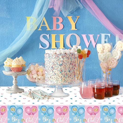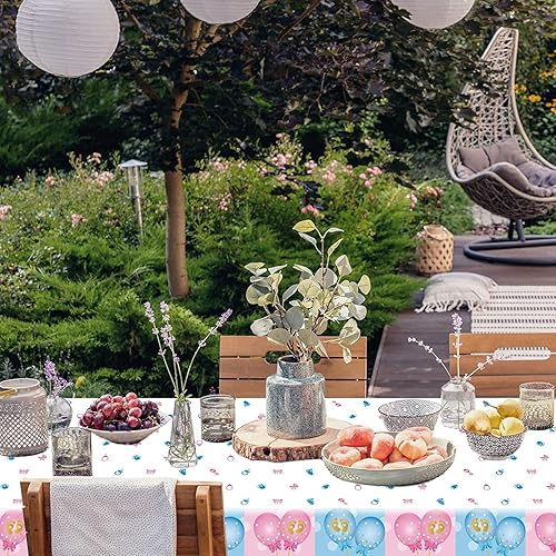 Gender Reveal Nappe de Fête 2PCS Rose Bleu Boy Or Girl Nappe Jetable Imperméable Ballon Nappe de Fête Décoration Enfant Anniversaire Baby Shower Table Décoration de Fête Accessoires 137×274cm