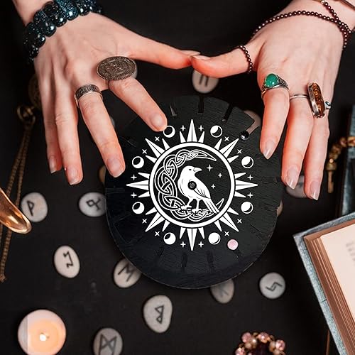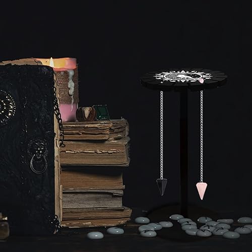 craspire Support de Pendule Support Présentoir en Cristal Corbeau Lunaire Noir Planches Métaphysiques de Divination de Radiesthésie en Bois Support de Pendule pour Huile Essentielle de Cristal Décor
