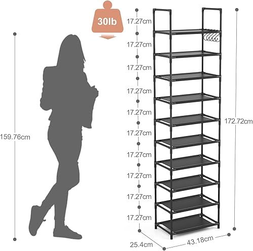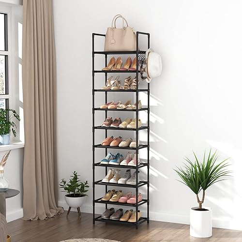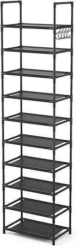 Vicye Étagère à Chaussures à 10 Niveaux, Meuble Chaussure Entree pour 20 à 25 Paires de Chaussures, Haute et Ouverte, Range-Chaussure Étroit, pour Couloir, Salon, Chambre à Coucher, Noir