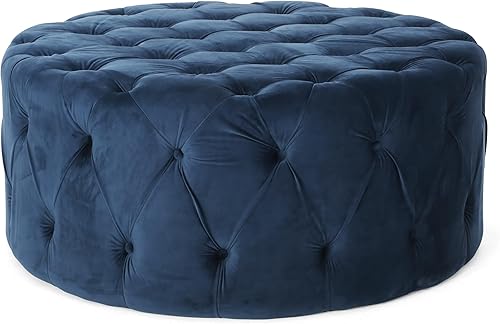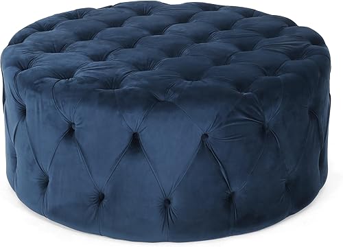 HDMOZUYT Pouf en Velours Bleu Glamour et Moderne - Capitonné, surdimensionné, Polyvalent pour Le Salon et la Chambre à Coucher