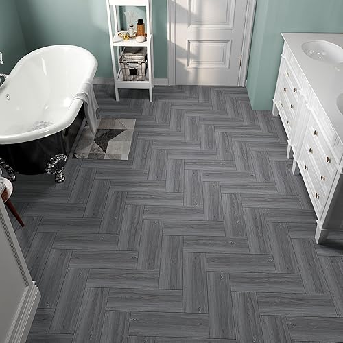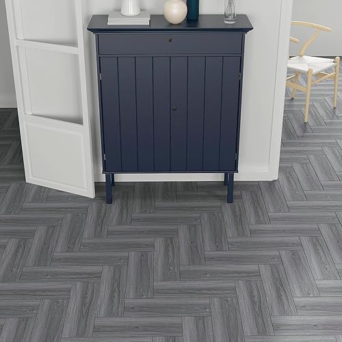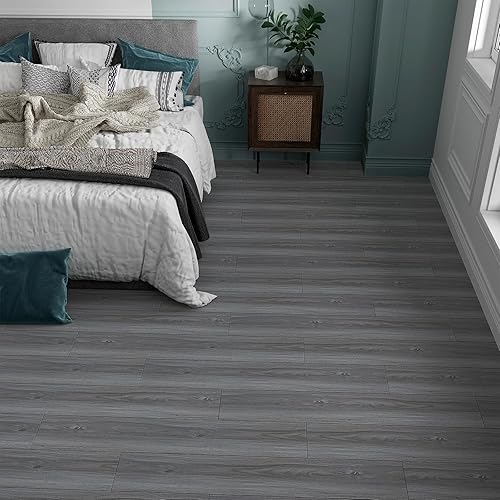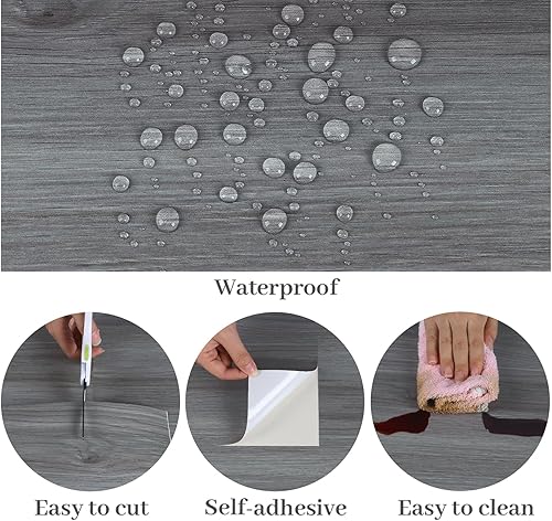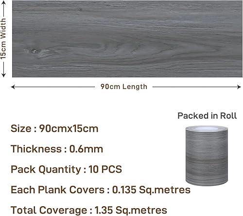 VaryPaper Dalle PVC Adhesive Sol Effet Bois Gris 90cmx15cm 10 Pièces Lino Sol Rouleau Carrelage Adhesif Sol Salle de Bain Stickers Carrelage Cuisine Dalle PVC Sol Garage Salon Revetement de Sol