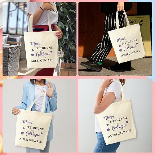 JIOMULIG Idée Cadeau Collègue Travail Tote Bag Merci Noel Boulot Métier Départ Retraite Anniversaire Collègue Femme Sac Cabas Réutilisable Halloween Valentin Personnalisé ToteBag Cadeaux