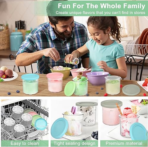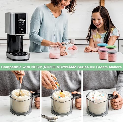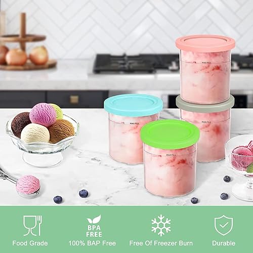 XQZMD Lot de 4 bacs à glace pour crème glacée, tubes Creami pour Ninja Creami, réutilisables, accessoires de machine à glace ninja avec couvercle (4)