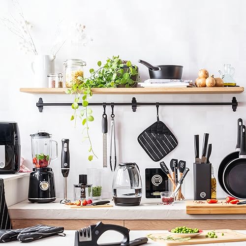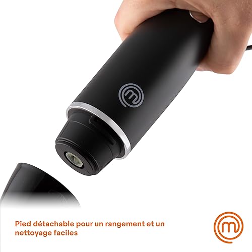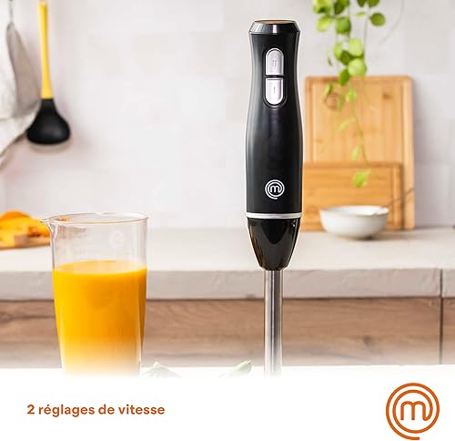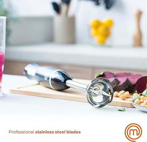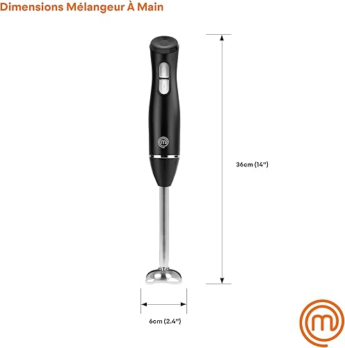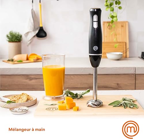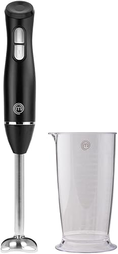 MasterChef Mixeur Plongeant et Mini Hachoir, Blender Soupe / Presse Puree Electrique 4 en 1 avec Verre Doseur 700ml, Fouet et Bol Hachoir, Deux Vitesses, avec Lames Acier Inoxydables, Noir