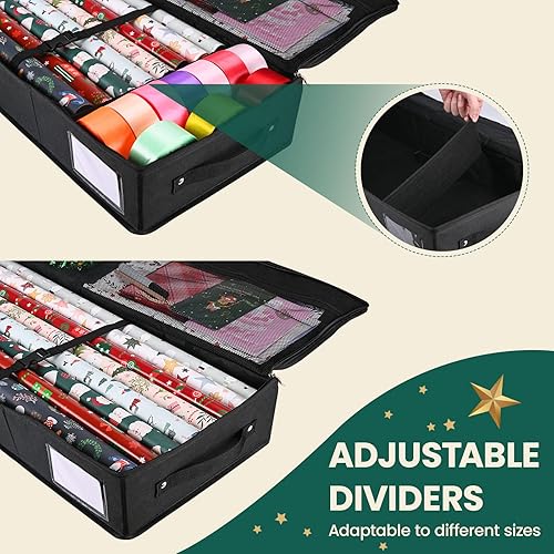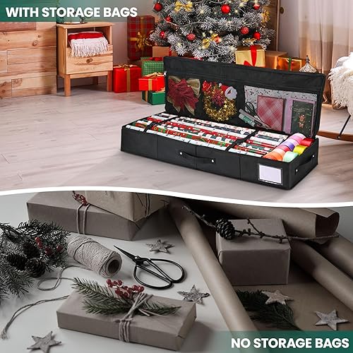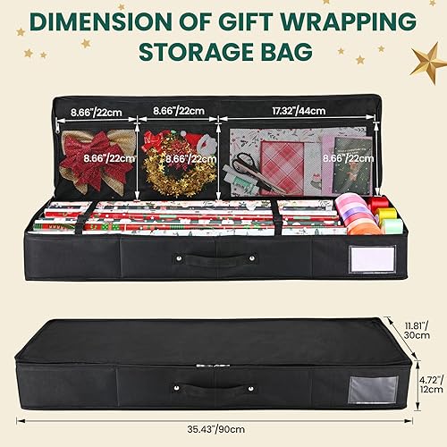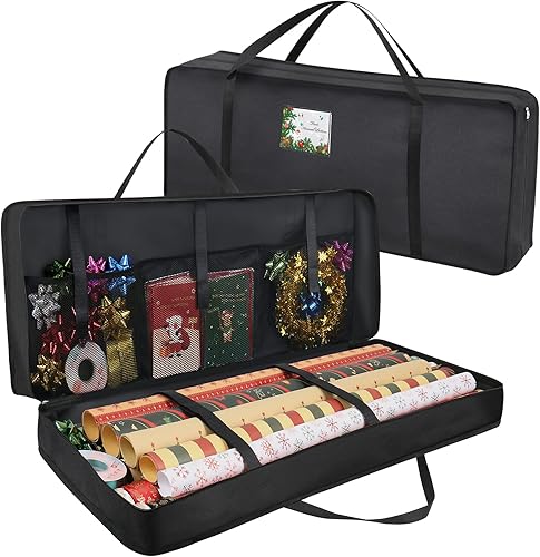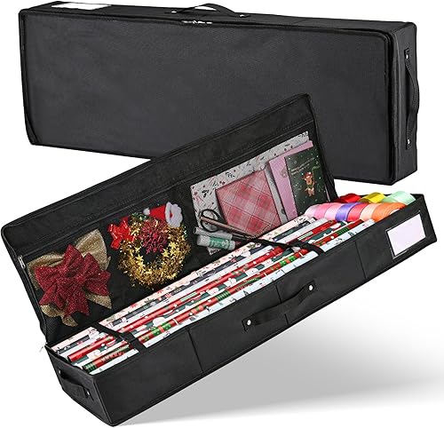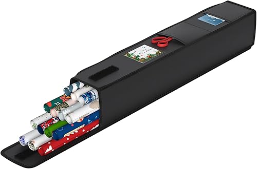 BROSYDA Sac de Rangement pour Papier d'emballage 600D Oxford Indéchirable, 74x13x13cm avec 2 Poches Avant, Fente pour Cartes, Organiseur de Papier Cadeau et Les Décorations de Noël