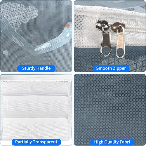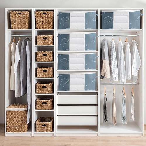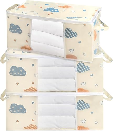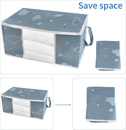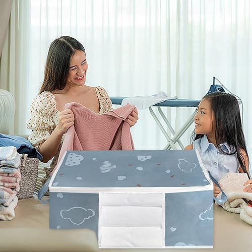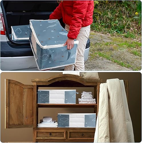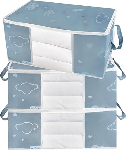 Zythrem 3 Pièces 50L Sac Rangement Vetement Boite Rangement Vetement Non-Tissé Sac de Rangement Bleu Rangement Couette Housse Rangement Couette Organisateur de Placard