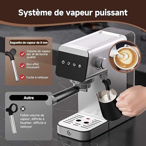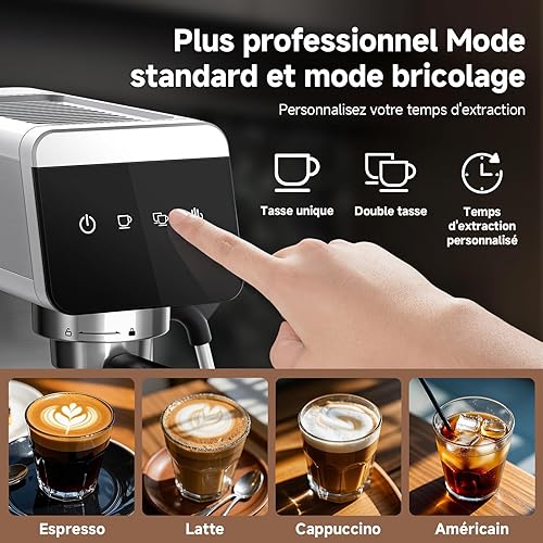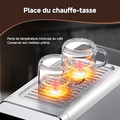 AMZCHEF Machine À Café Expresso 20 bar avec écran LED Home 2 en 1 avec réservoir amovible de 1,2 L pour cadeaux ménagers compacte en acier inoxydable 1350 W