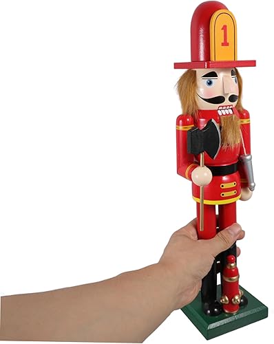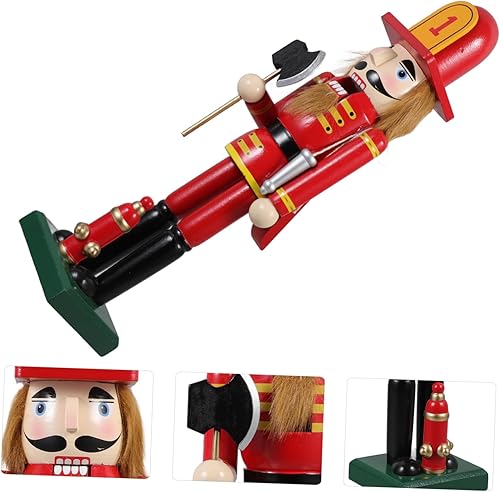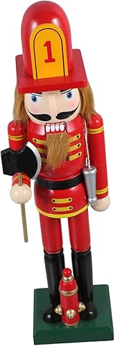 Cabilock Décoration De Noël Traditionnelle en Forme De Soldat Pompier Casse-Noisette 38 Cm Décoration De Cuisine Esthétique