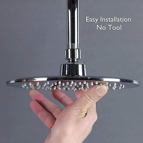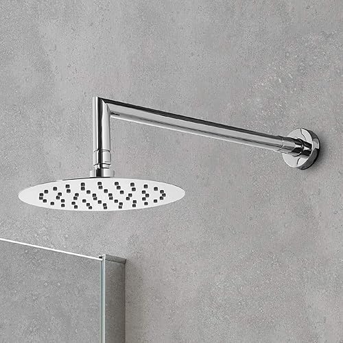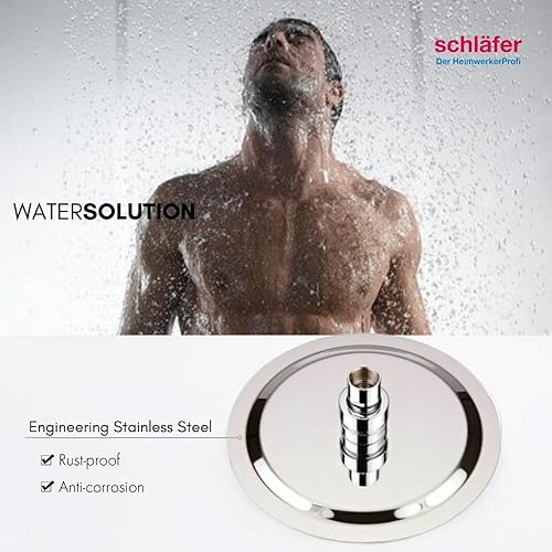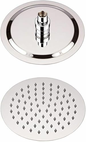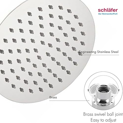 Schläfer 134800 | Pomme de douche ultra-mince en acier inoxydable ronde 20 cm anti-calcaire Pomme de douche ultra-fine, cabine de douche Pomme de douche, joint réglable universel G 1/2, chrome, argent
