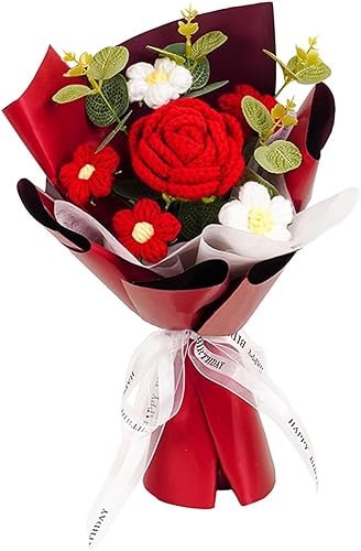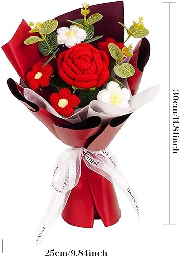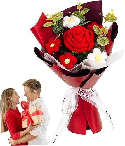 Cunlvyyds Fleurs au Crochet, Bouquet de Fleurs de Crochet créatif, tricotées artificielles terminées, Fleur exquise, Cadeaux la Saint-Valentin pour Elle, Artificiel
