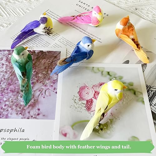 lwingflyer Oiseaux en Mousse de Plumes de Moineau Artificiel avec Pince Branches de Jardin Couronnes de Noël de Printemps Décor extérieur (Pince-Méatale)