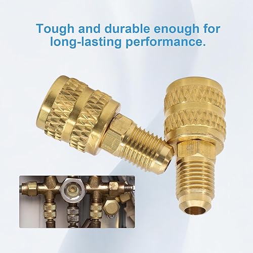 Konuooer R410A Adaptateurs Clim Adaptateur Recharge A/C 1/4 inch Mâle à 5/16 inch (2pcs) Femelle SAE Climatiseurs à Système Divisé pour R410A Mini Split System HVAC Service Réfrigération.